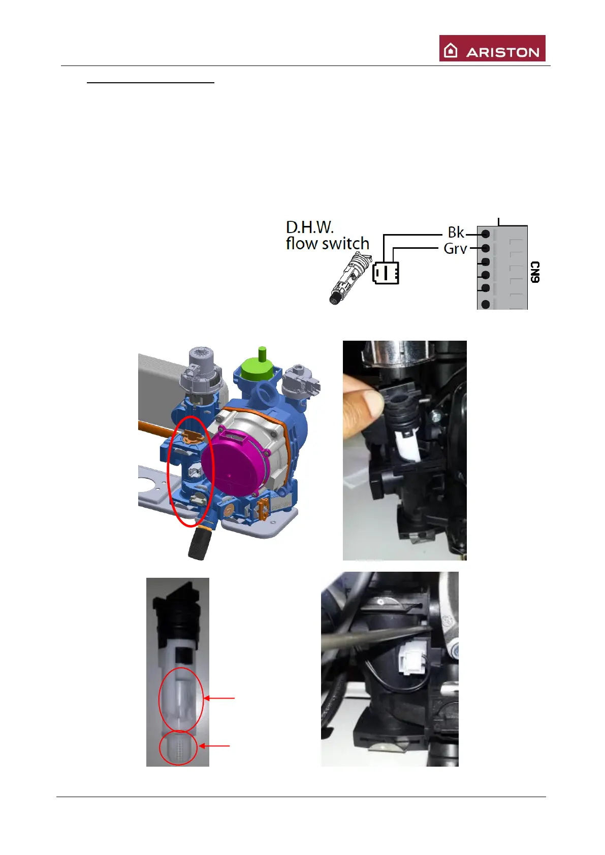When turned on sanitary mode, the flow of water passes through the flow switch (on/off), the float moves