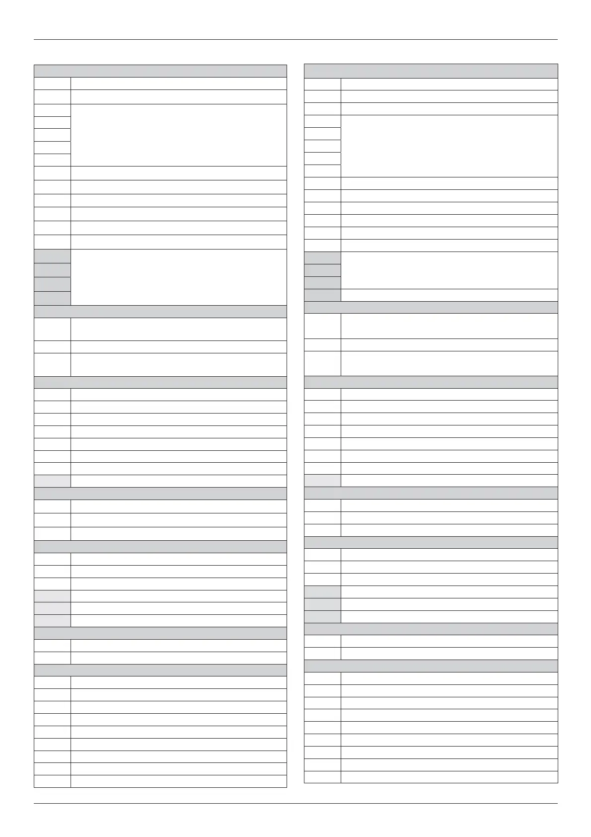 Tabella riepilogativa codici errori Table summarising error codes
