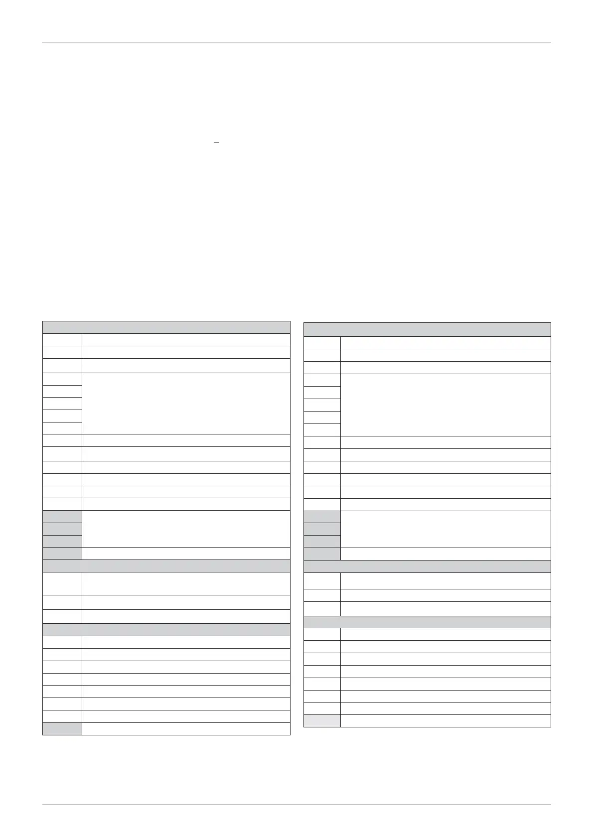 Table summarising error codes