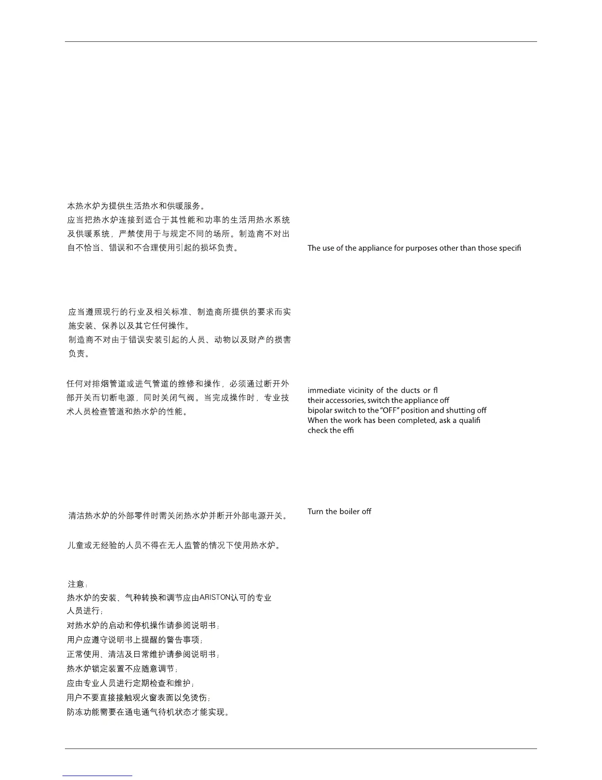 请妥善保管说明书;当将锅炉转交到其他用户或安装者时,请将