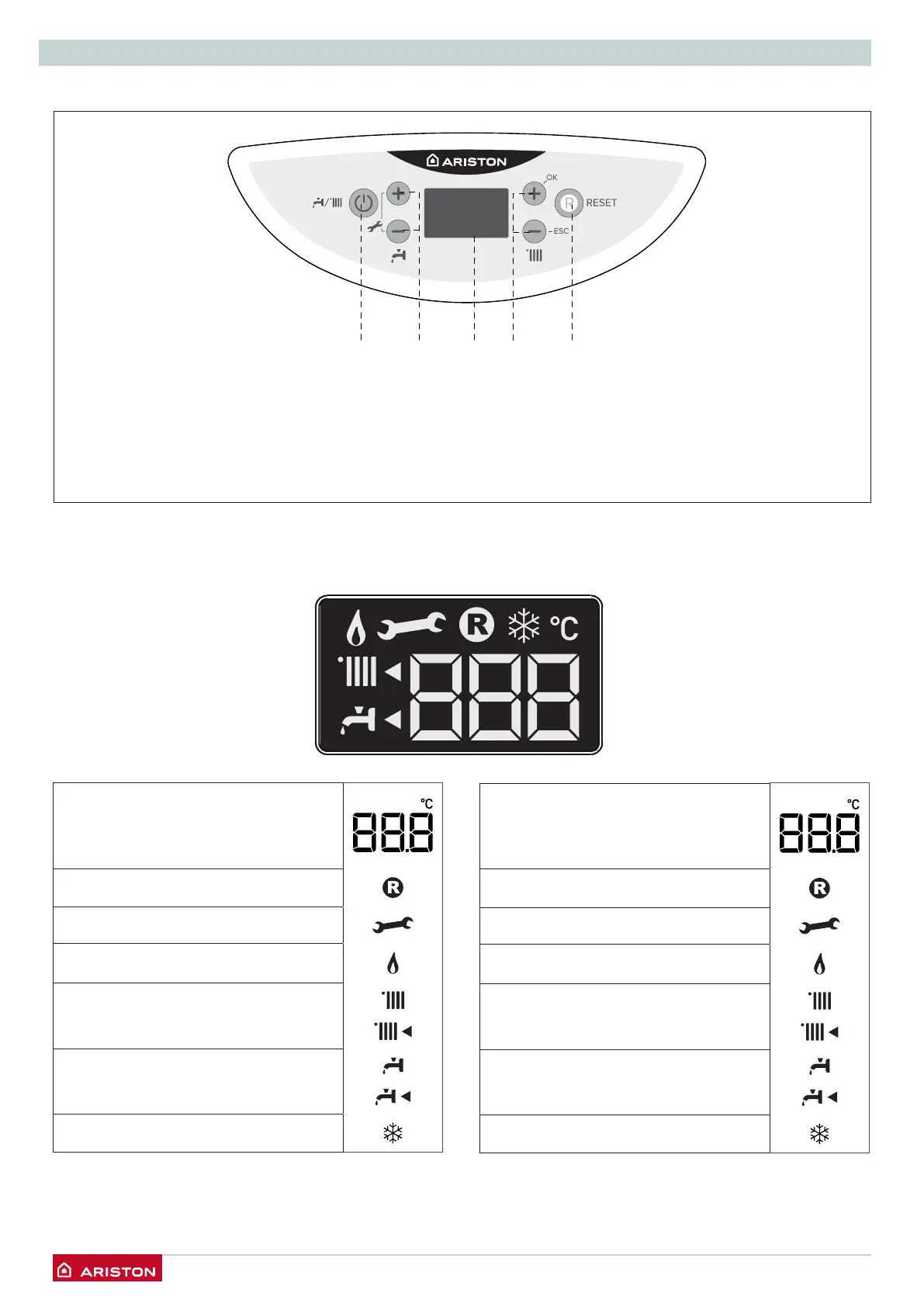 2. Кнопки +/- регулировки температуры ГВС