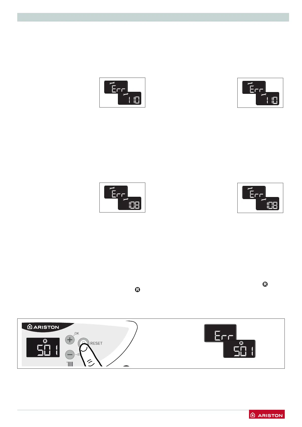 Дисплейде Err жазуы және қате коды (мысалы Err/501)