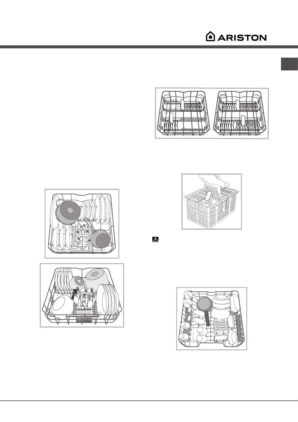 cutlery arrangement. The cutlery basket should be positioned