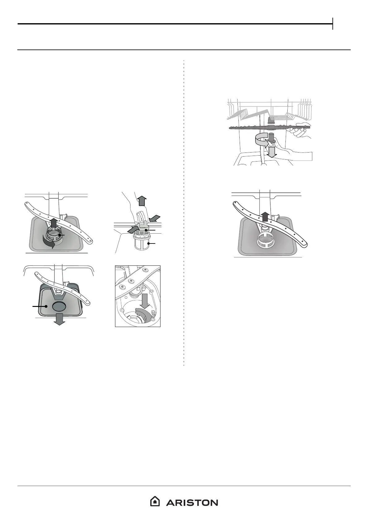 To remove the upper spray arm, turn the plastic locking ring in an anti-