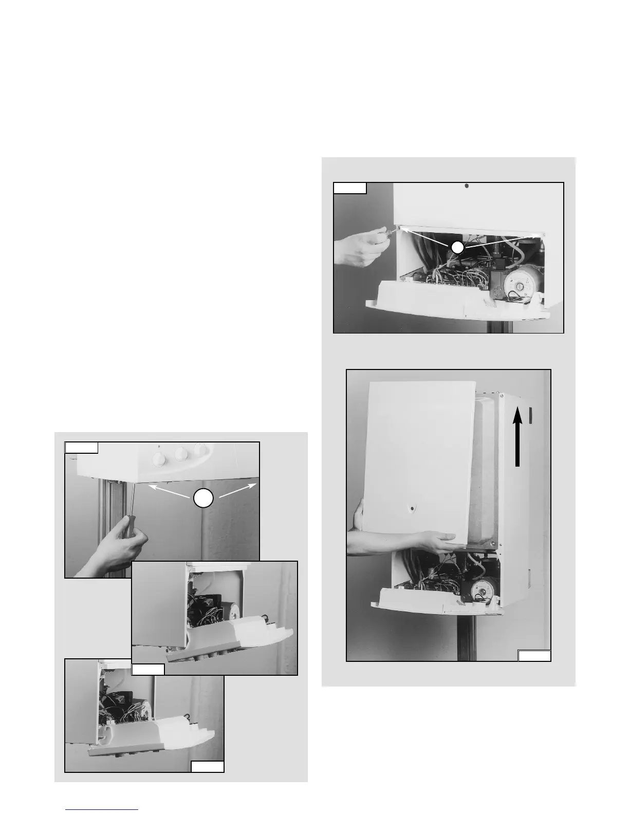 5. Lift the front panel from the raised screws at the the top of the