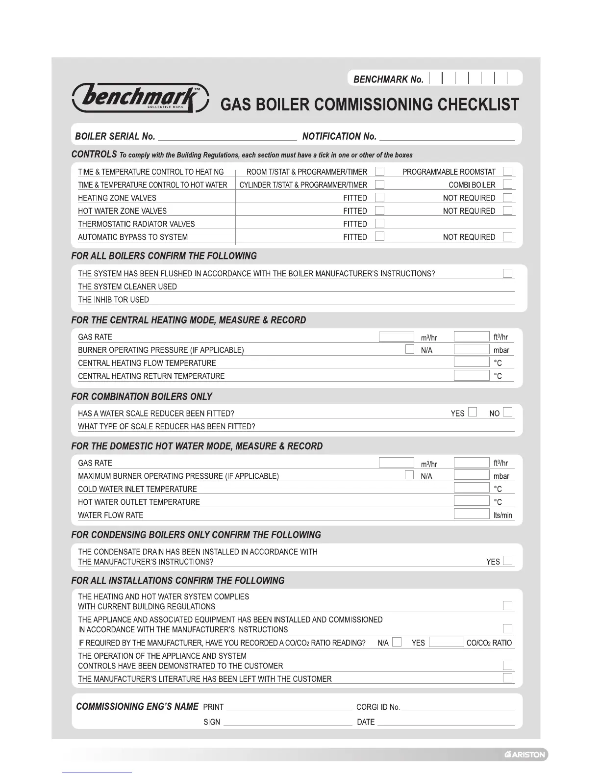 10. BENCHMARK COMMISSIONING CHECKLIST