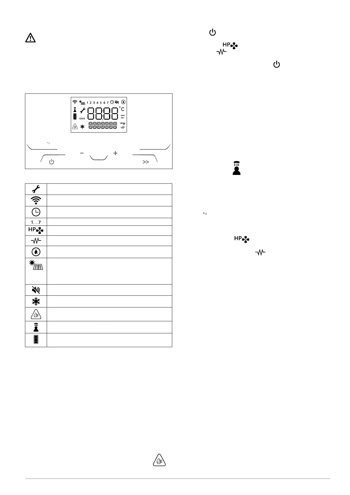 Druk op de " " knop om de boiler in te schakelen.