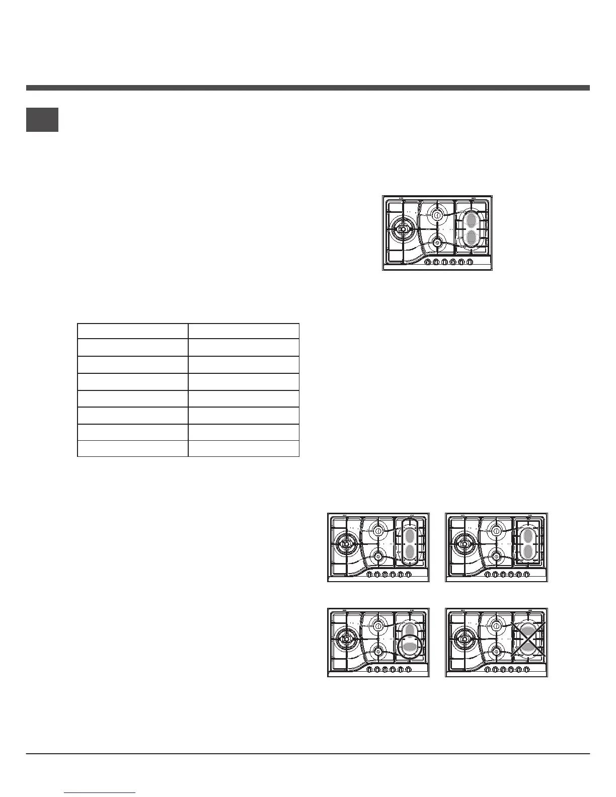queimadores (veja a tabela) com o objectivo de