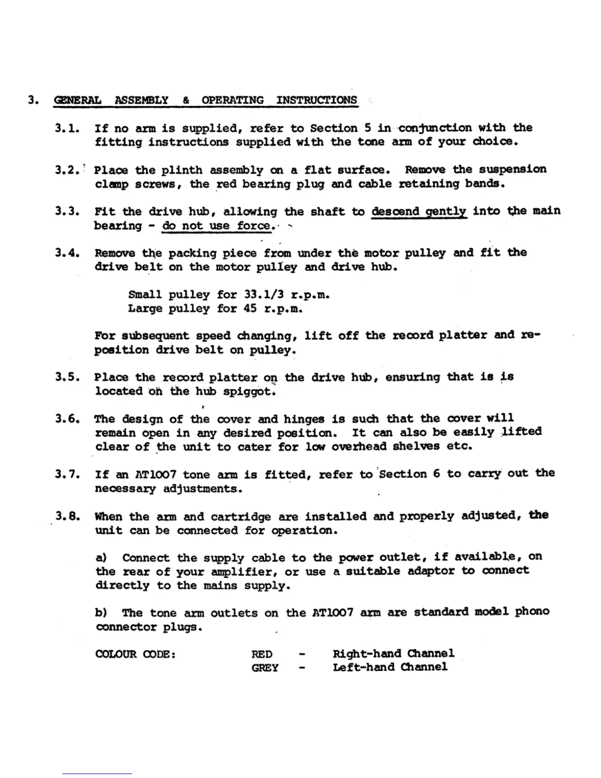 Ariston RD11s - General Assembly and Operation; Plinth Assembly; Drive Hub and Belt Installation; Connecting for Operation