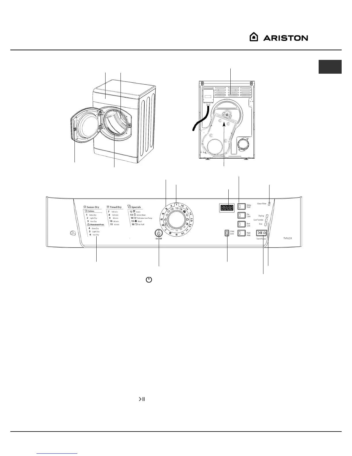 y se reiniciará la secadora. La luz indica que su secadora