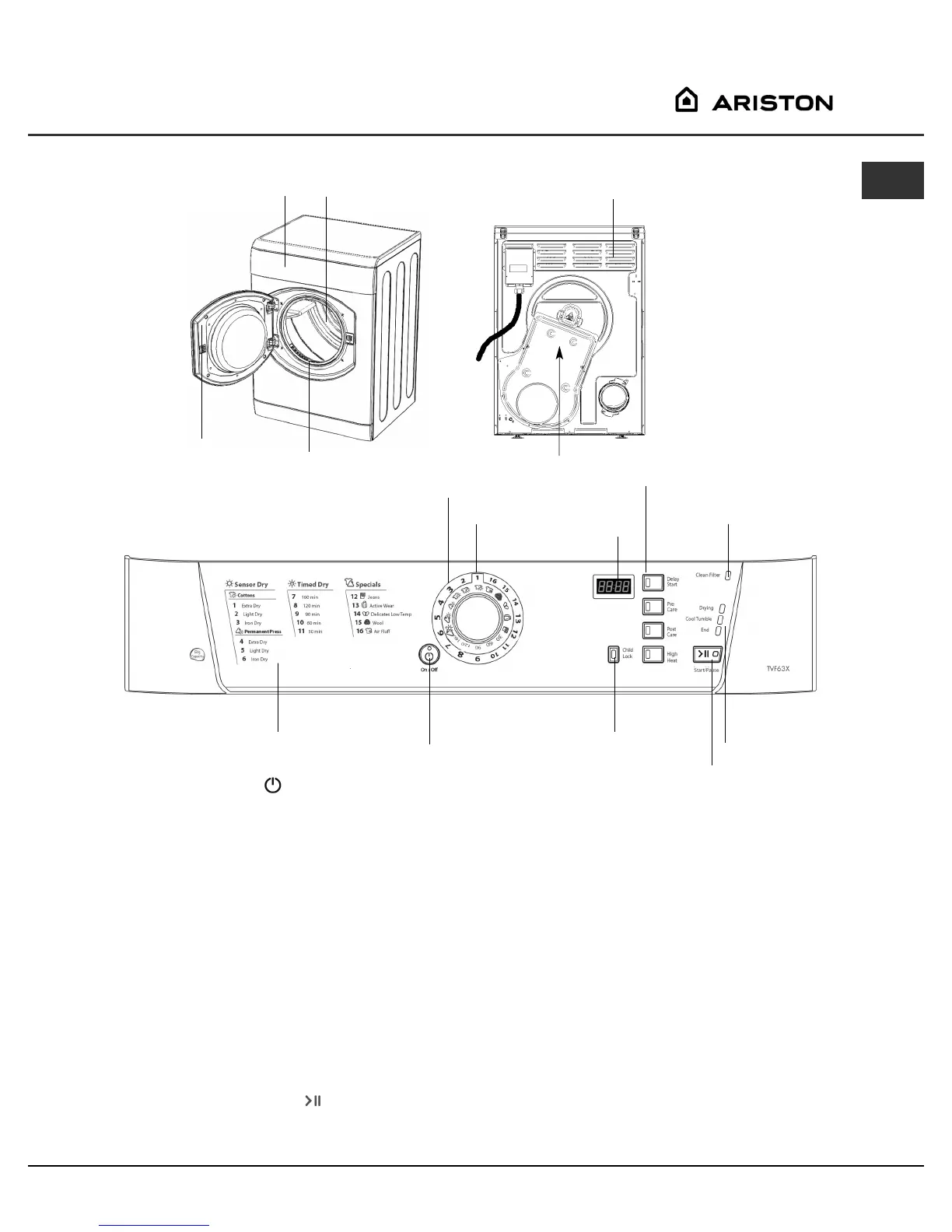 The ON/OFF button/light : If the dryer is running