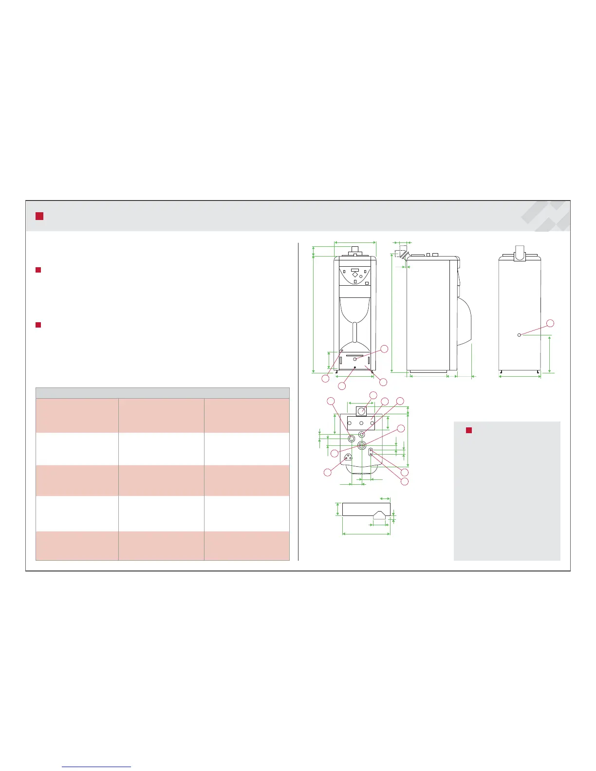 A-dimensions including comb.fl ue pipe