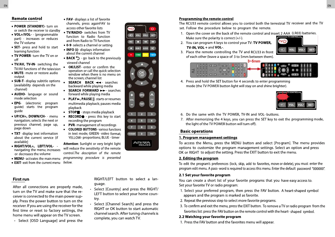 5. On the remote control of the receiver and on the TV