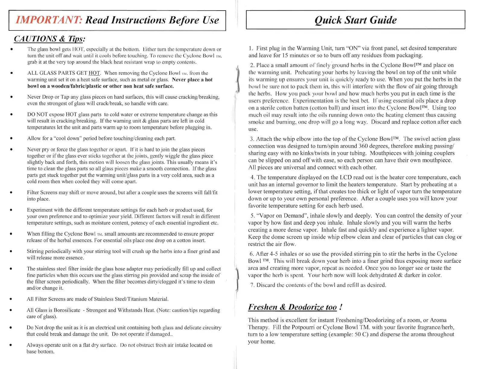 IMPORTANT: Read Instructions Before Use