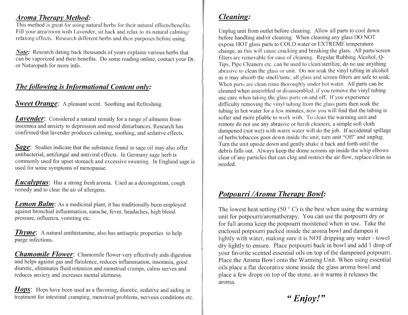 unit for potpourri/aromatherapy. You can use the potpourri dry or