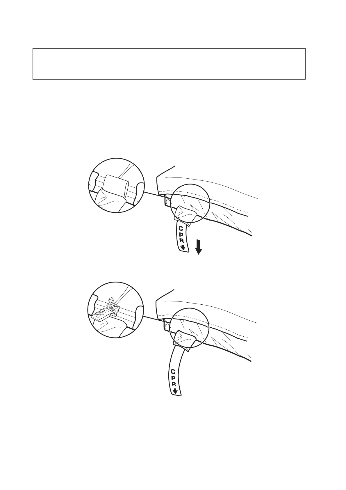 side as the tubeset) is a red strap labelled CPR. In the event of a