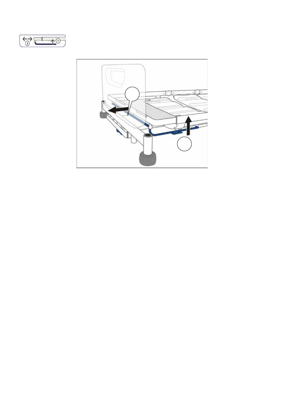 Lift the blue extension catch bar (1). Hold the middle of the end crossbar
