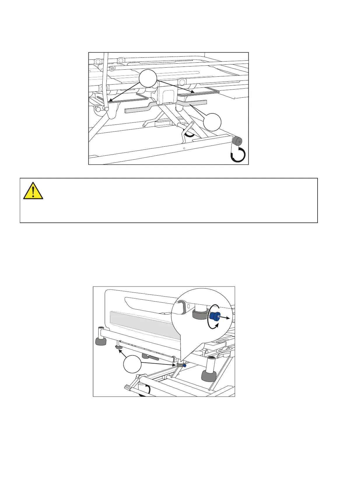 (Optional) The bed may also be fitted with DIN accessory rails (2).