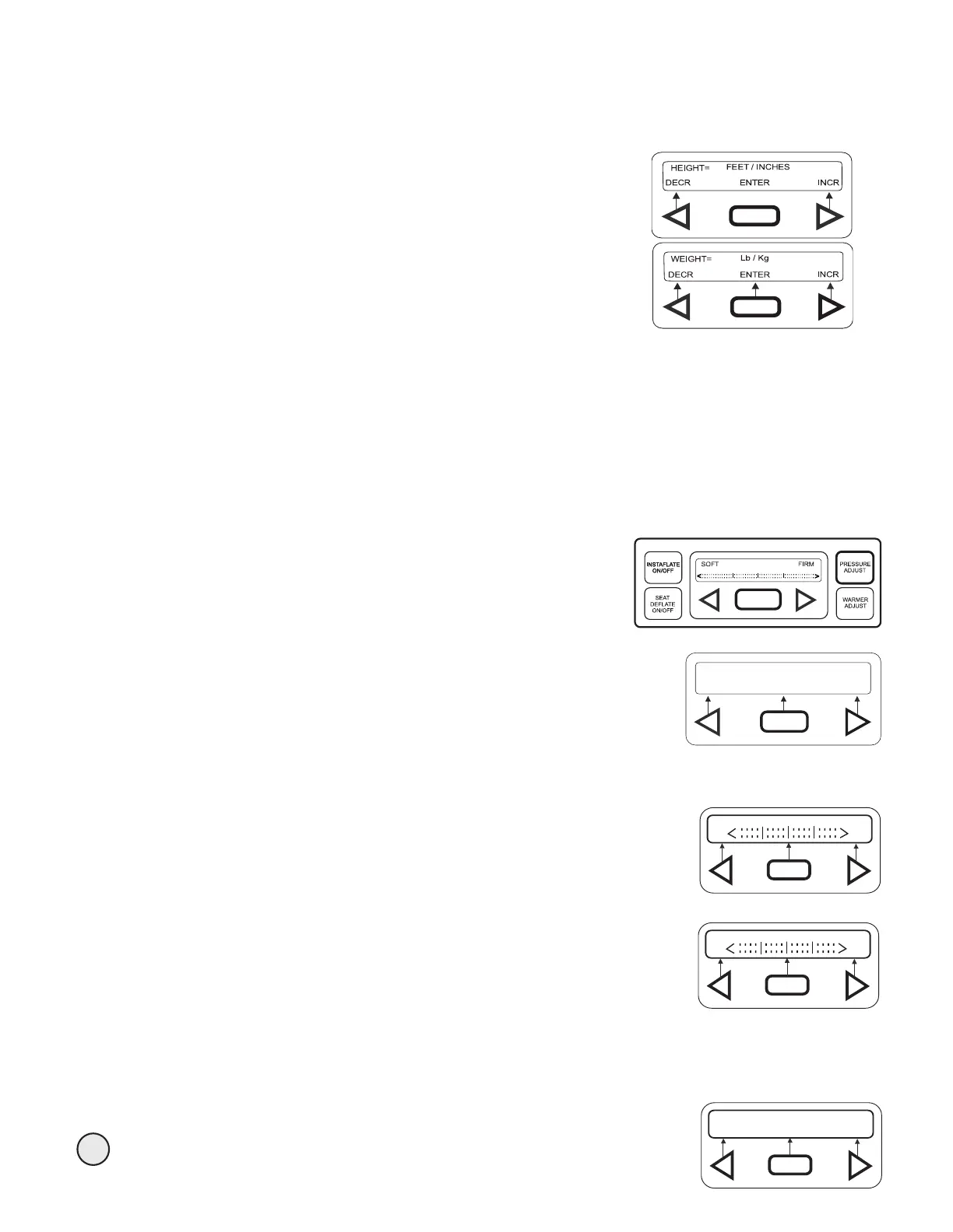 Use Pressure Adjust button to adjust pressure in each individual section of therapeutic surface. Air pressures are set by