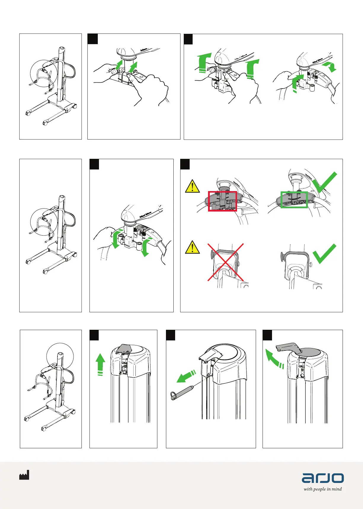 Press locking clip thumb pads. Lift attachment up (A) and away (B) from the T-bar.