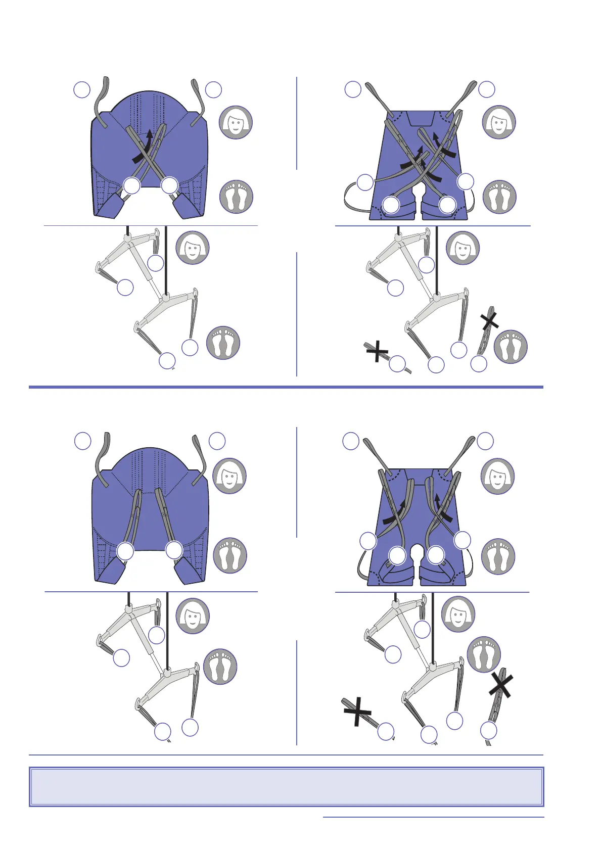 Legs opened with non-crossing straps