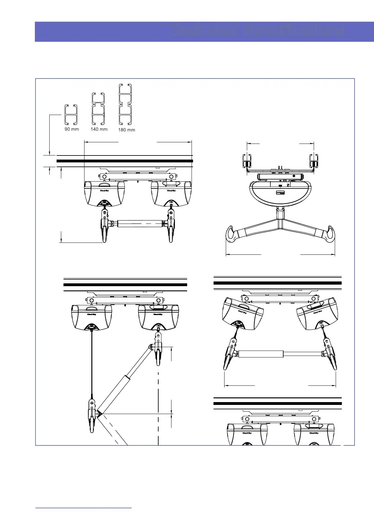 Arjo Maxi Sky 2 PLUS - Overall Dimensions; Technical Specifications