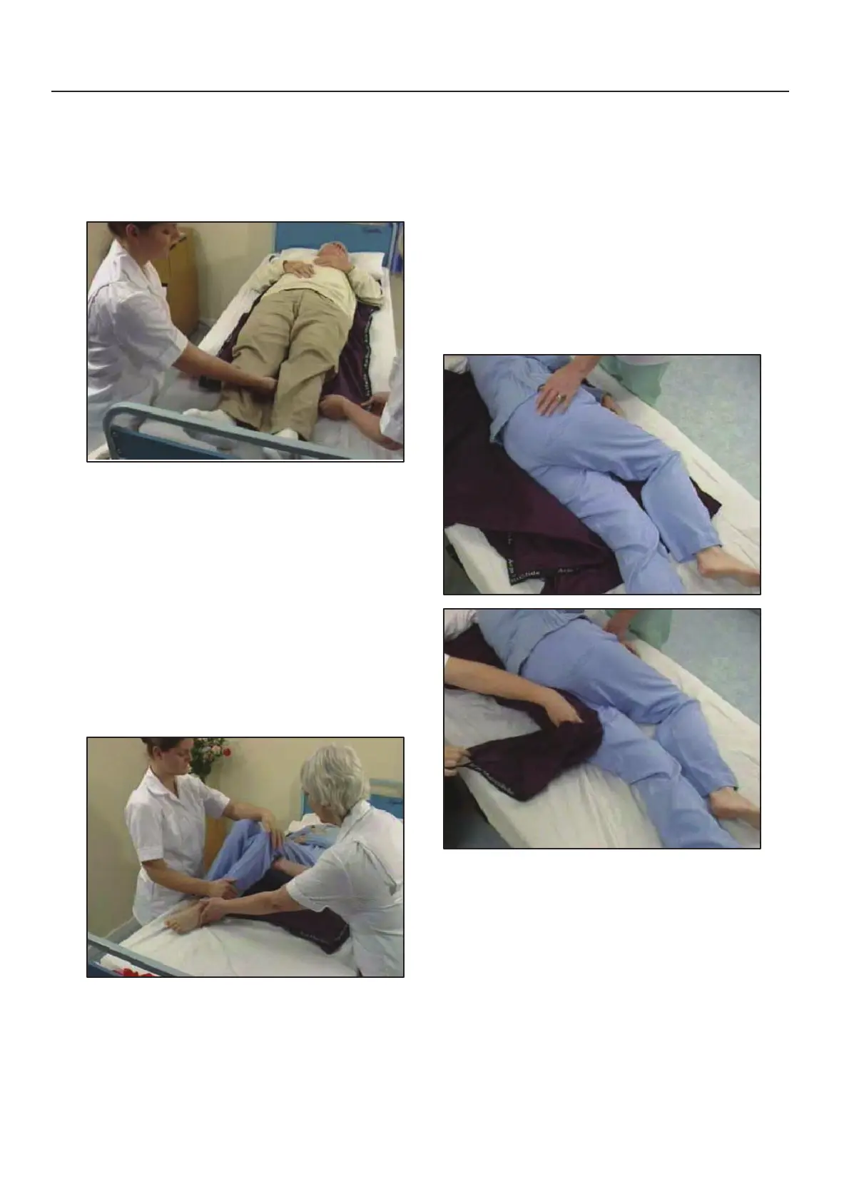 El cuidador sujeta las asas de la sábana MaxiSlide,