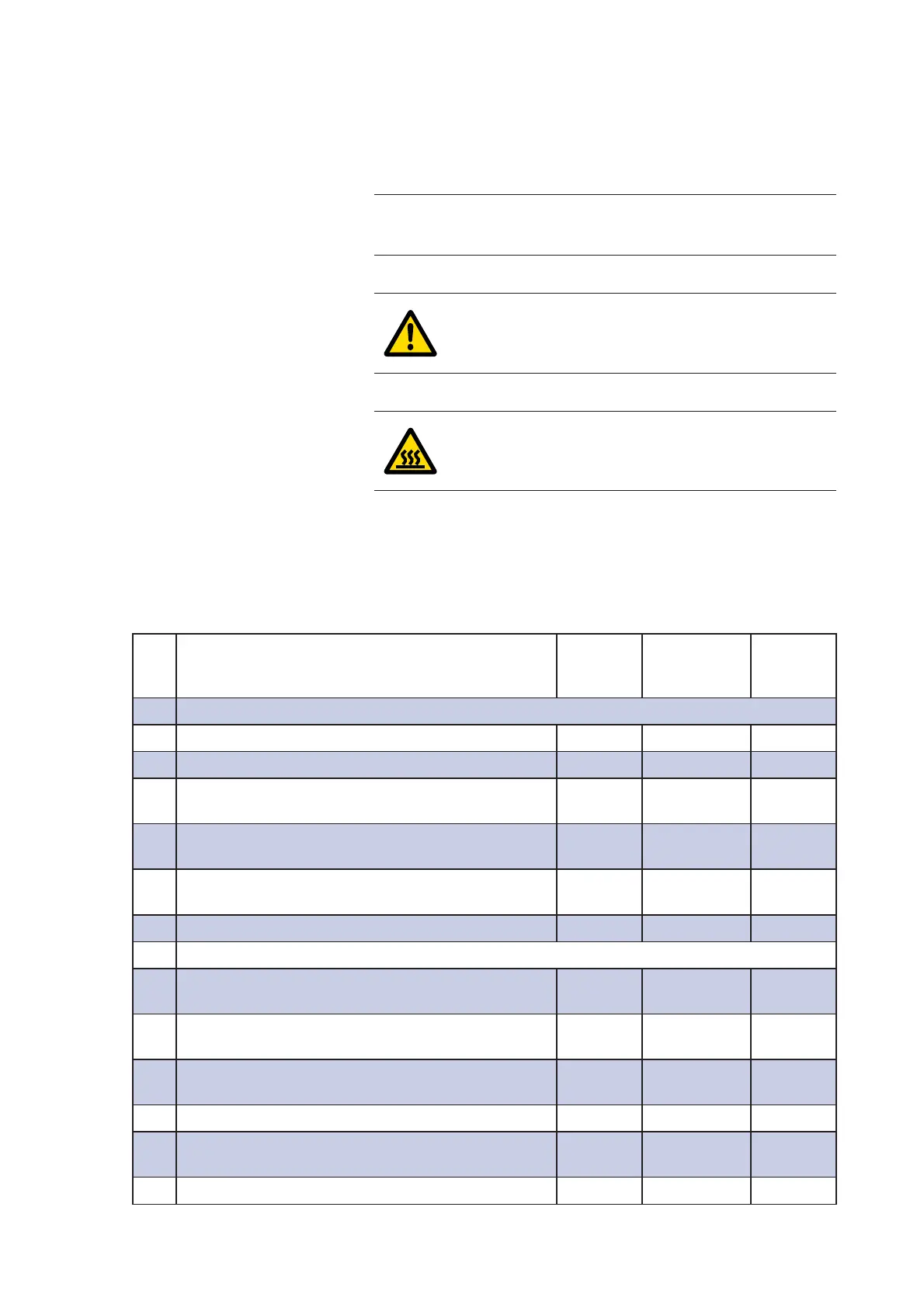 The service table below shows recommended maintenance