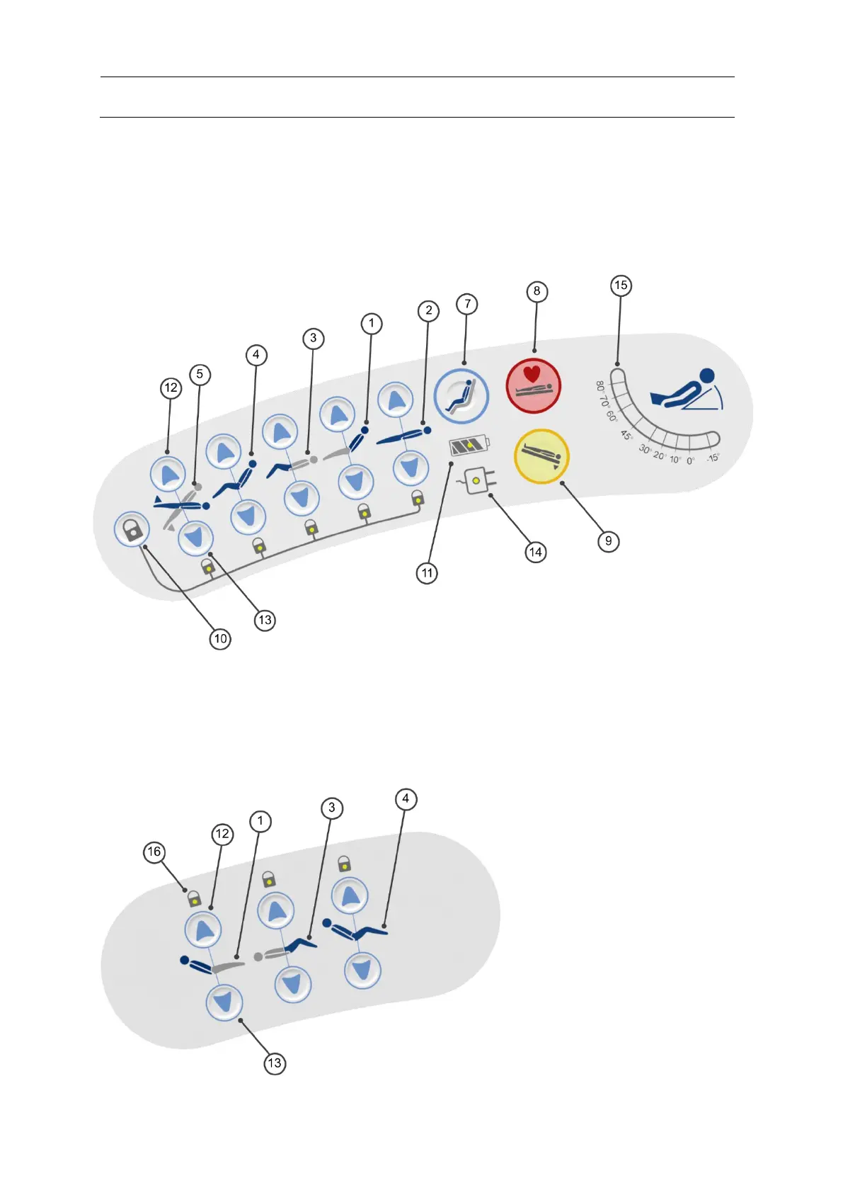 contour and tilt positions. Emergency assist functions include chair position, Trendelenburg