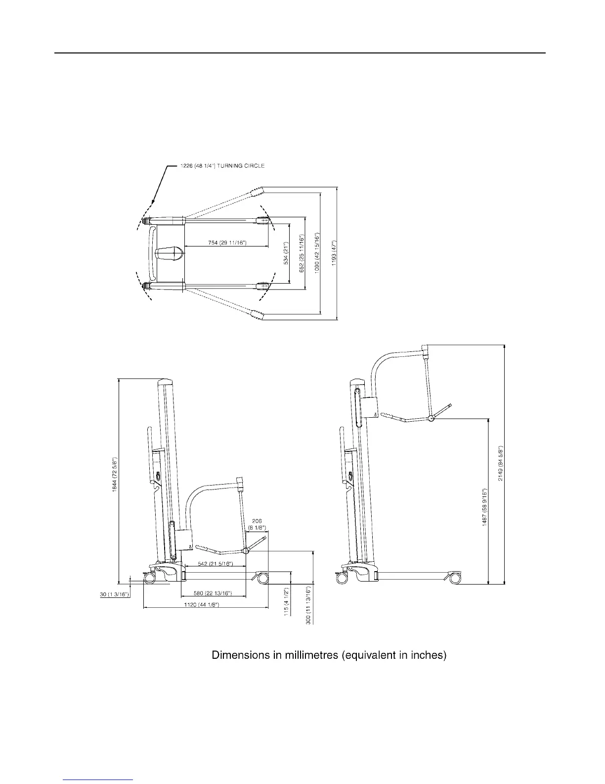 Arjo Tempo - Lifter Dimensions