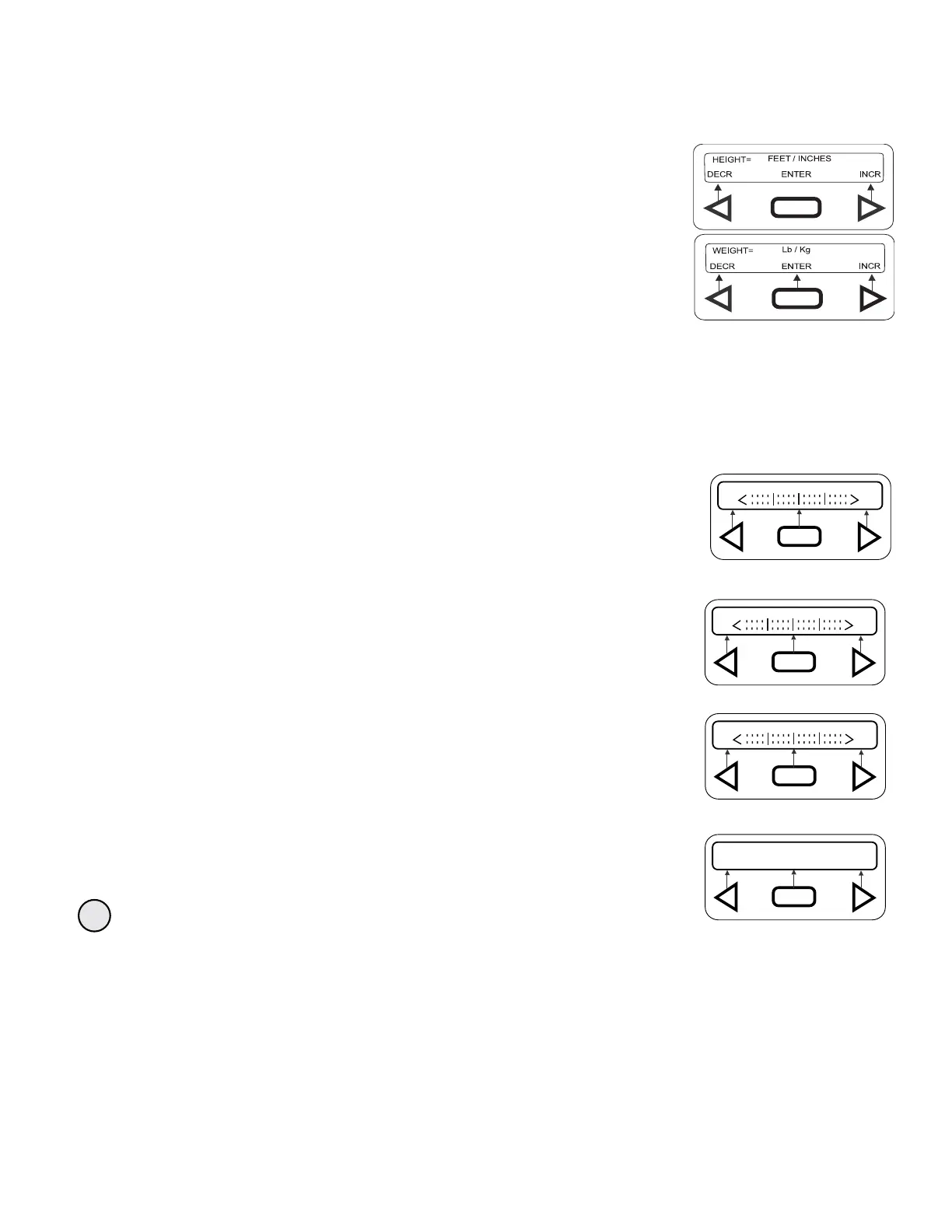 • Pulse el botón de flecha a la izquierda situado bajo DECR para disminuir el peso.
