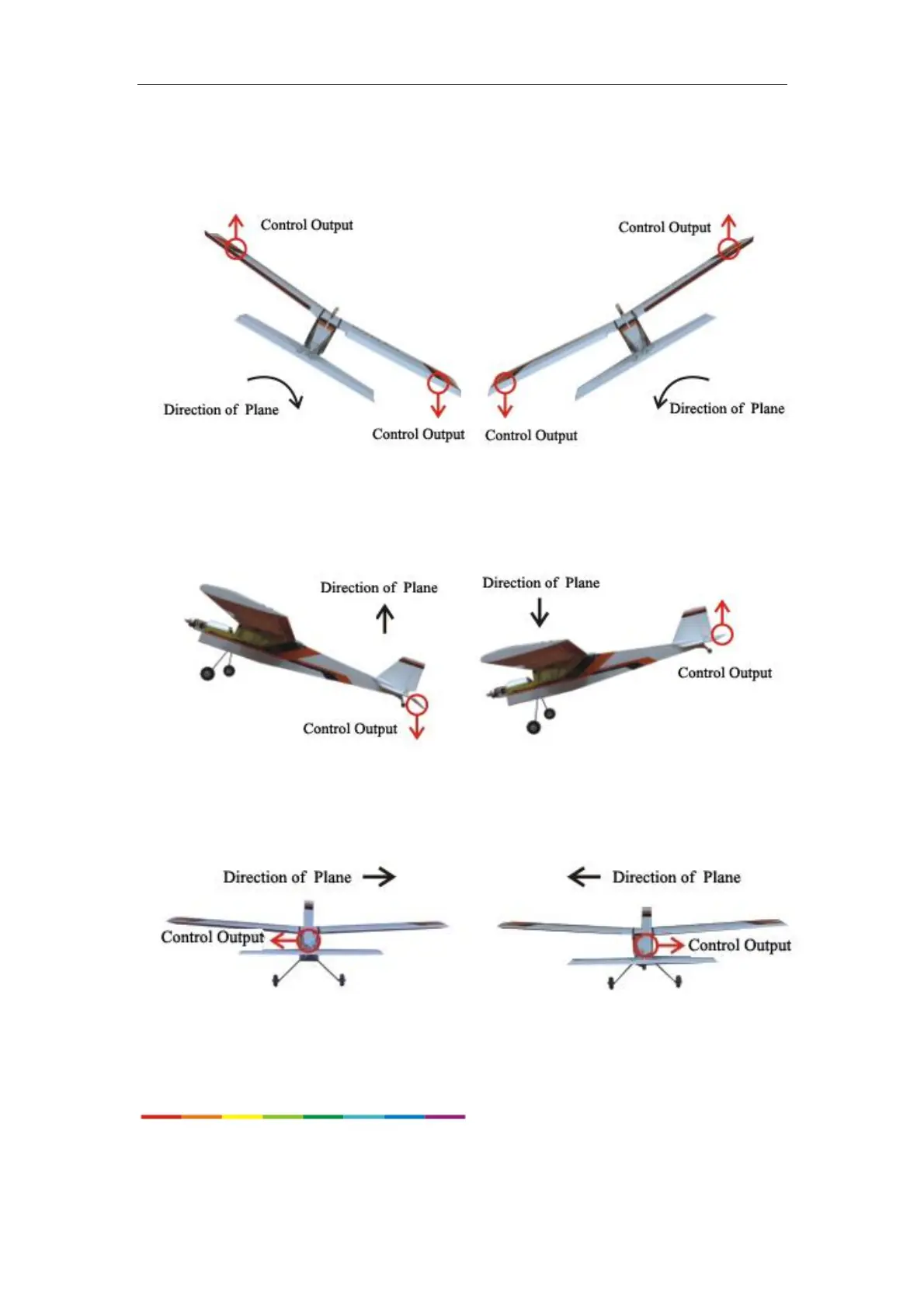1. Aileron: When rolling the plane to right, aileron shall produce a left compensation