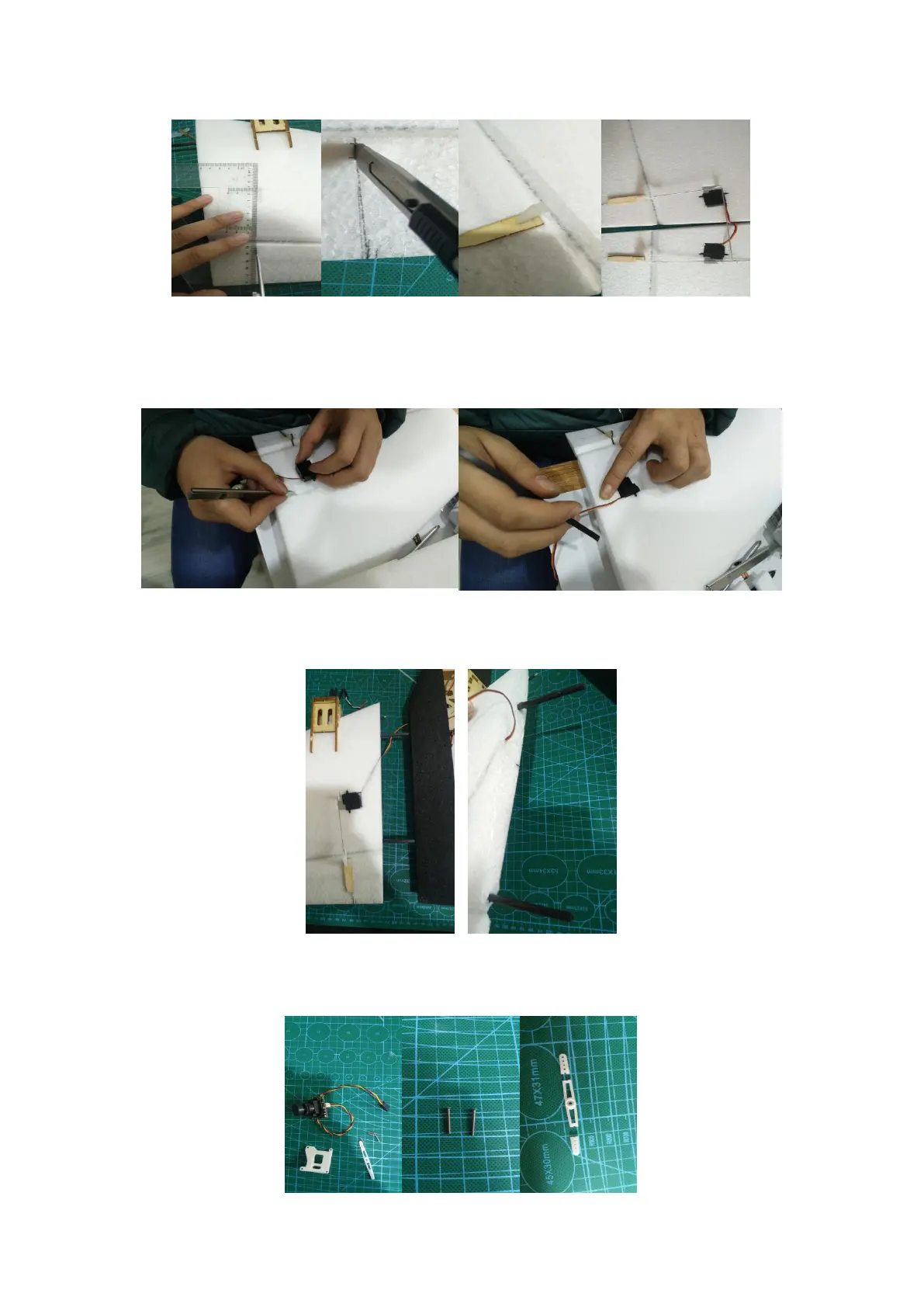 Stick the joint parts and carbon rods with foam glue. Then cross the servo cable through reserved