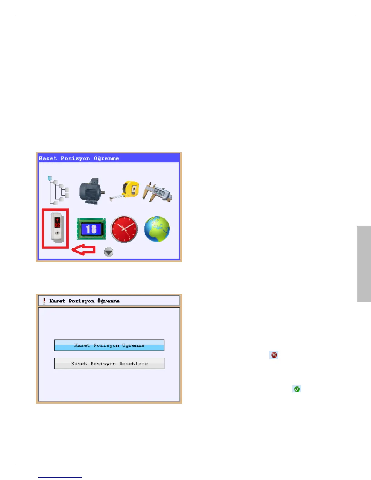 “Kaset Pozisyon Öğrenme” ikonuna gelerek Enter