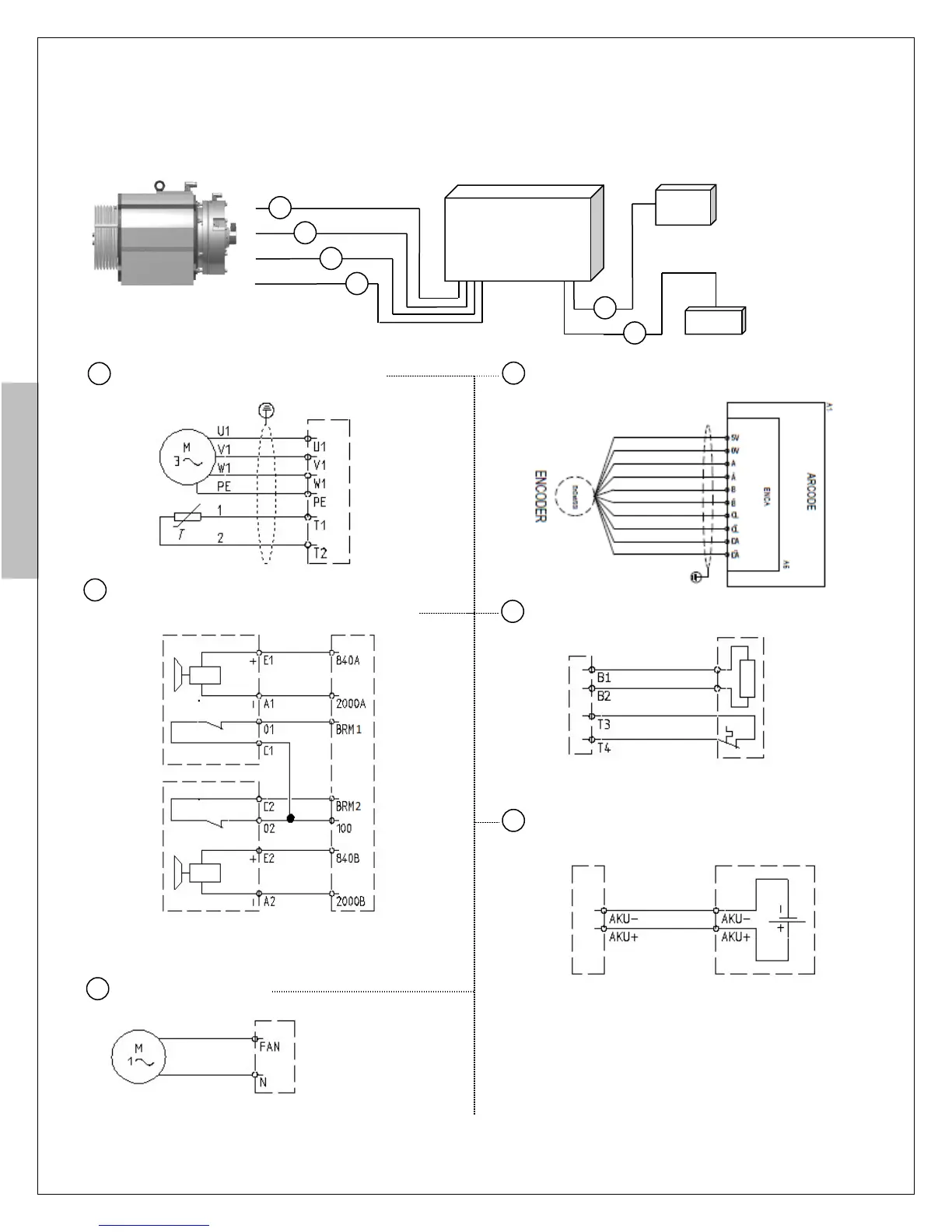 Make the connections of motor phases & motor PTC, brakes & brake release contacts, motor fan, encoder,