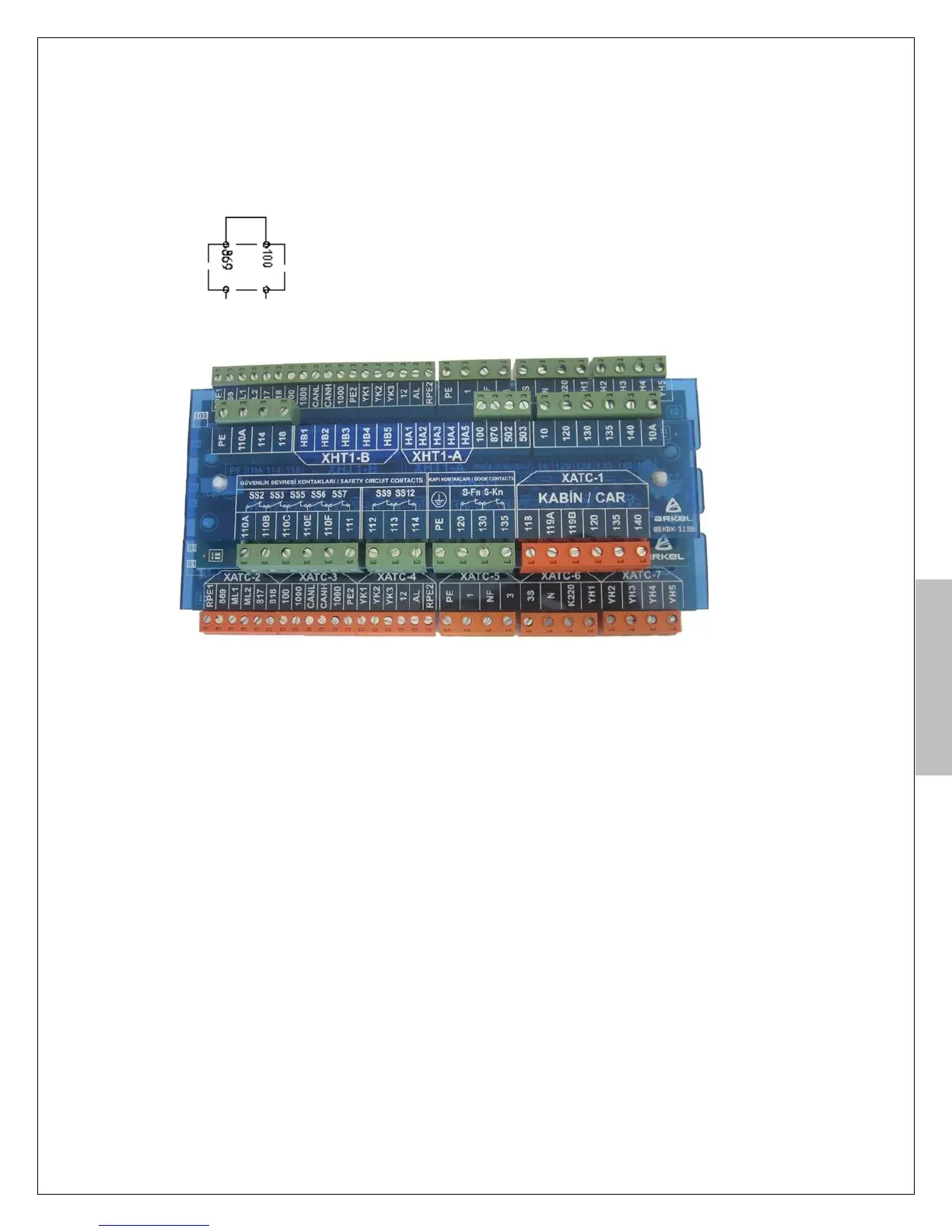 Kabin üstü revizyon sinyalini (869) KBK-10&11 kartında aşağıda gösterildiği gibi 100 terminaline köprüleyiniz.