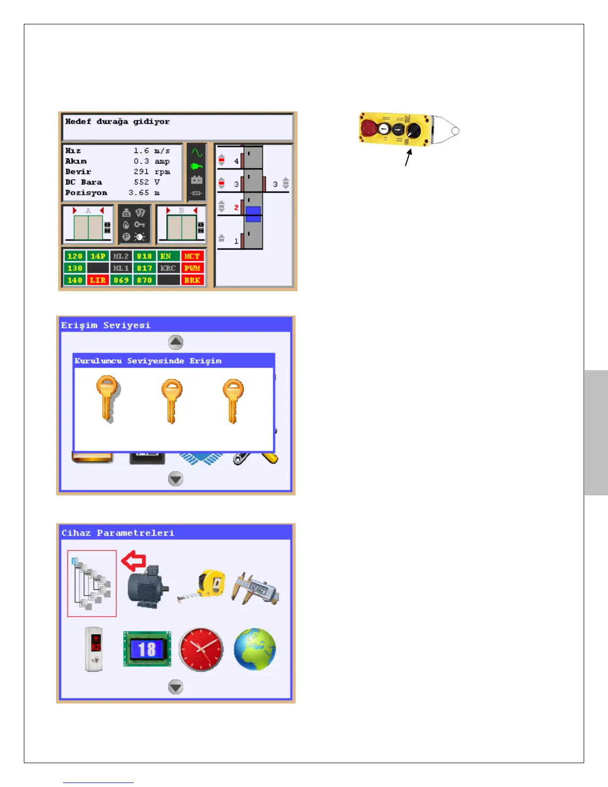 asansörü revizyona alınız. Bu durumda yukarı ve aşağı butonları ile motor ileri-geri hareket ettirilebilir.