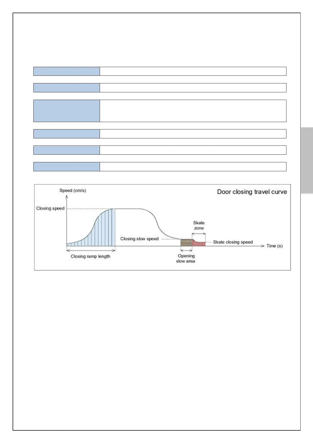 closing speed) and while door decelerates (from closing speed to slow