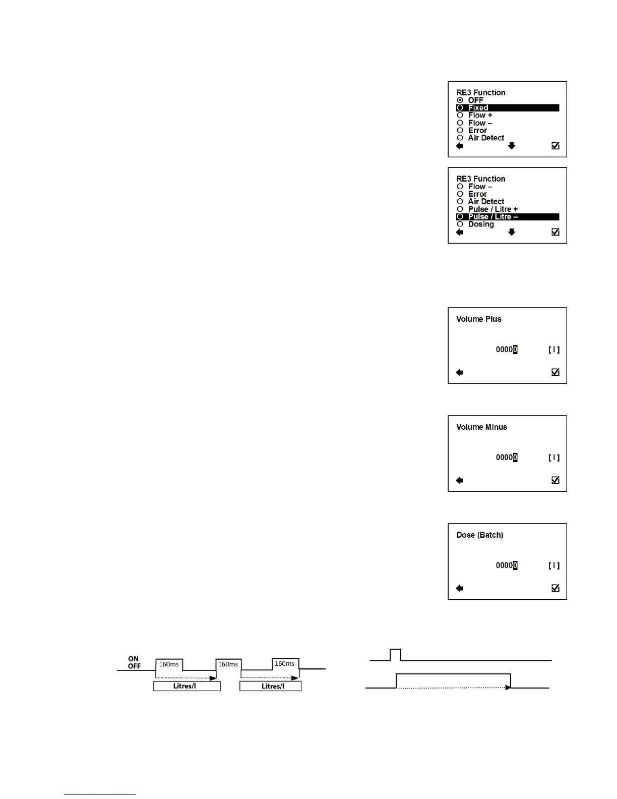 User Settings > Pulse Output > RE3 & RE4 > RE3 (RE4) function