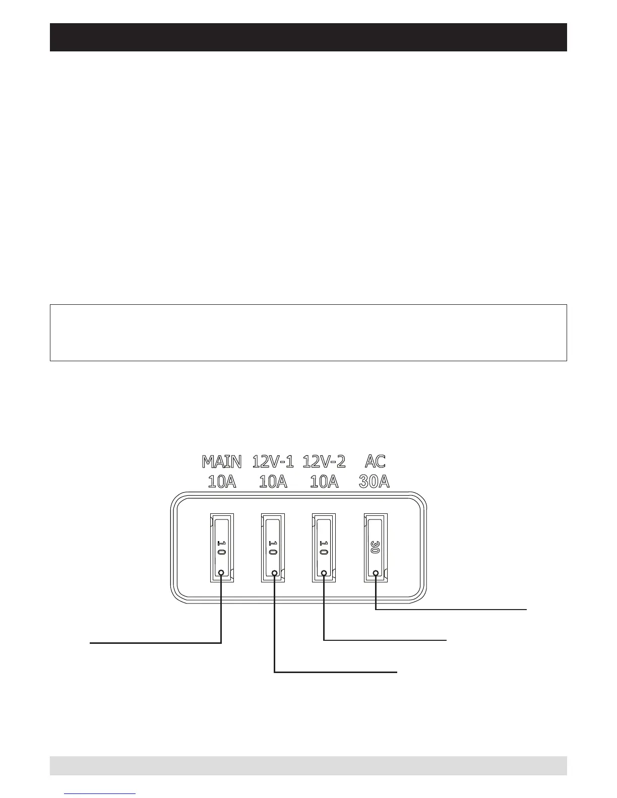 for outlets are underneath the lid. If the battery cables are corrected in reverse polarity this will blow the