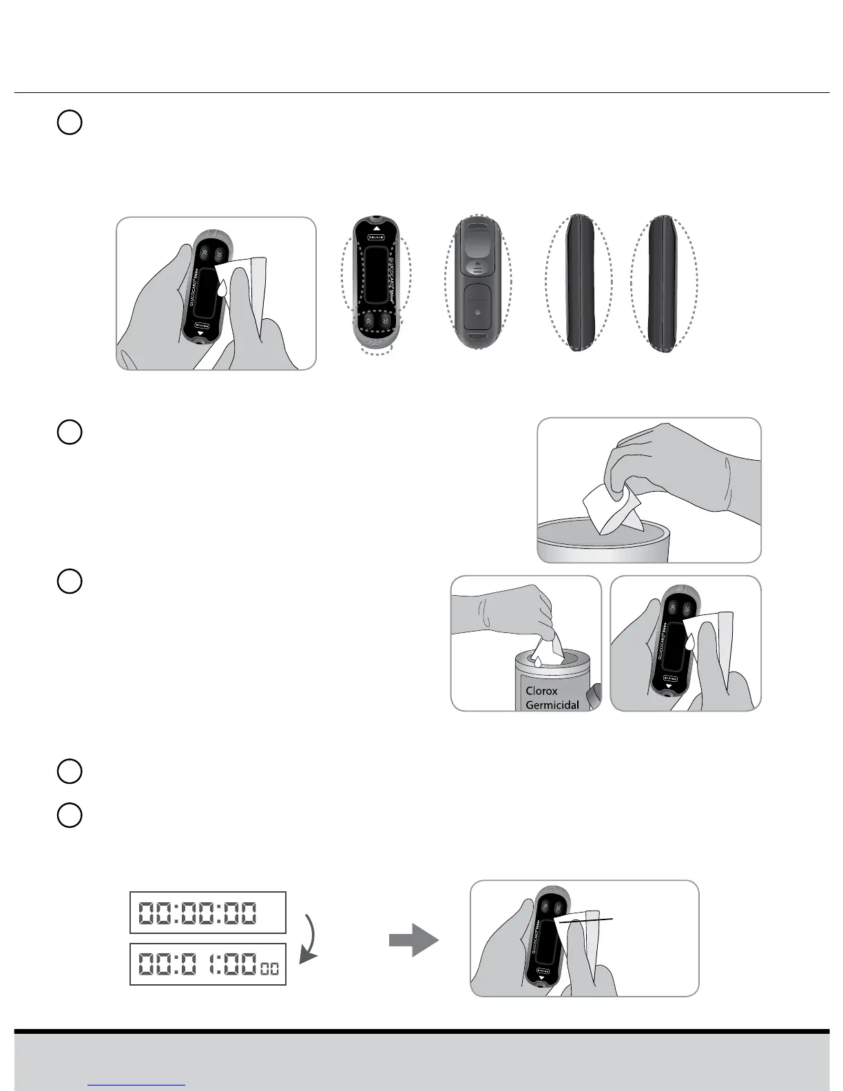 Wipe the entire surface of the meter 3 times horizontally and