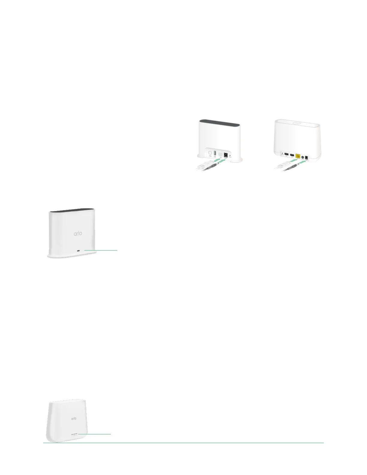 • Solid blue. The base station is connected to the internet and to an Arlo device.