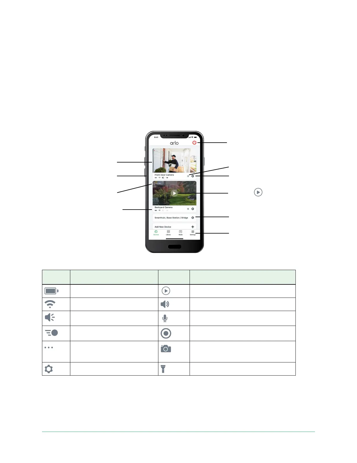 Tap the camera feed to display these icons