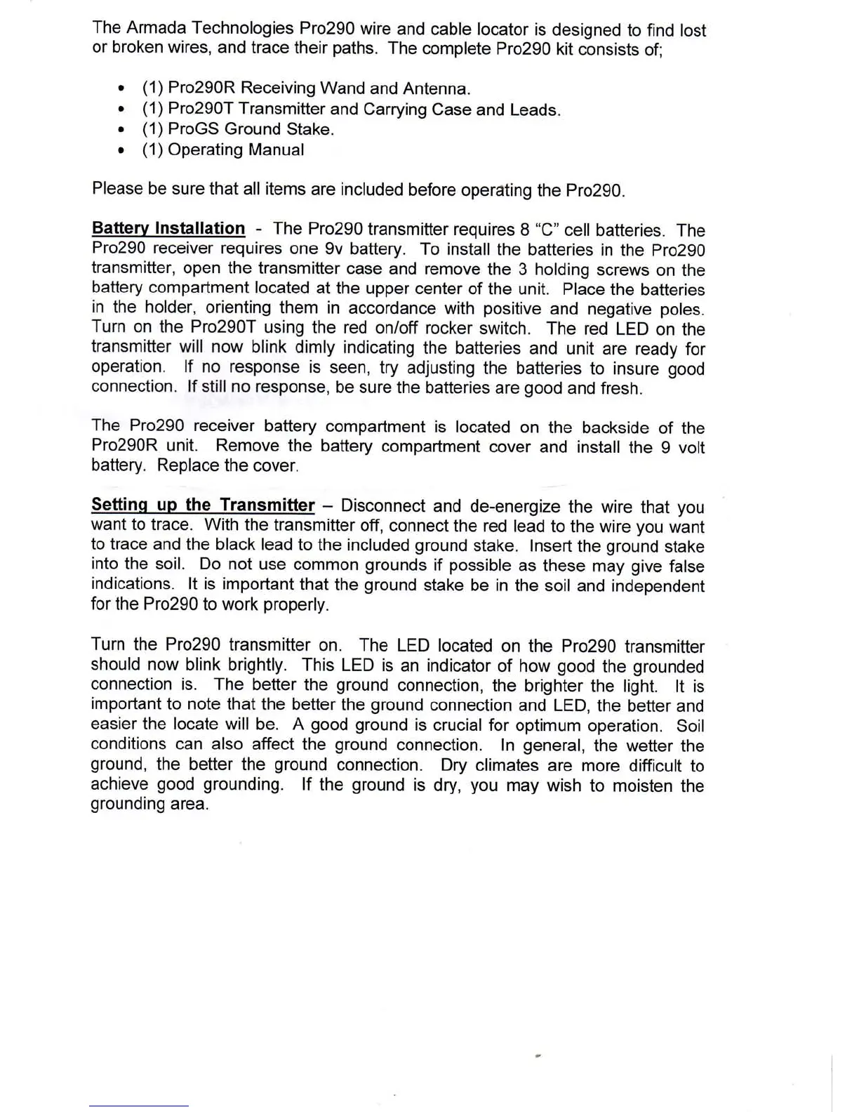 Armada Pro290 - Kit Contents; Battery Installation; Setting up the Transmitter