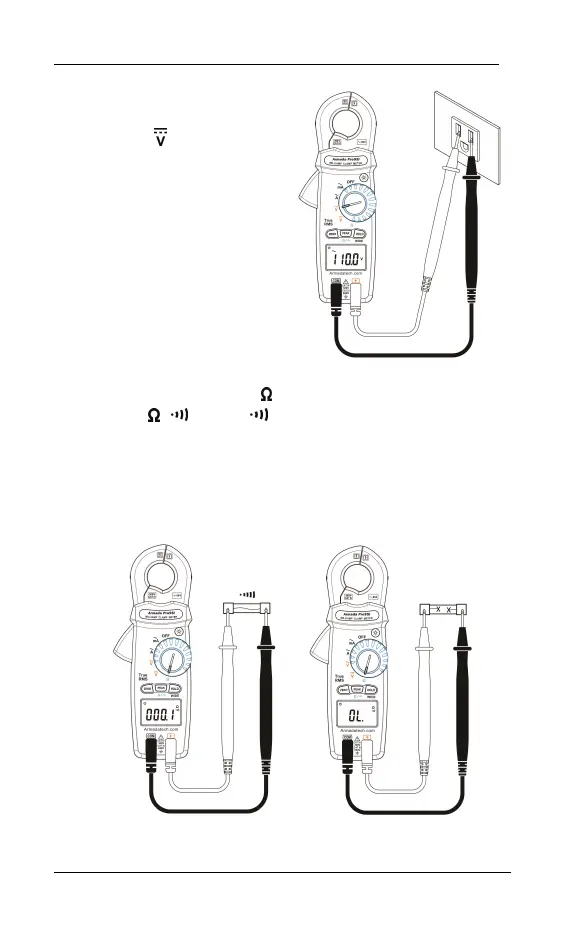 Connect the red test lead to the “ + ” terminal and the black lead to