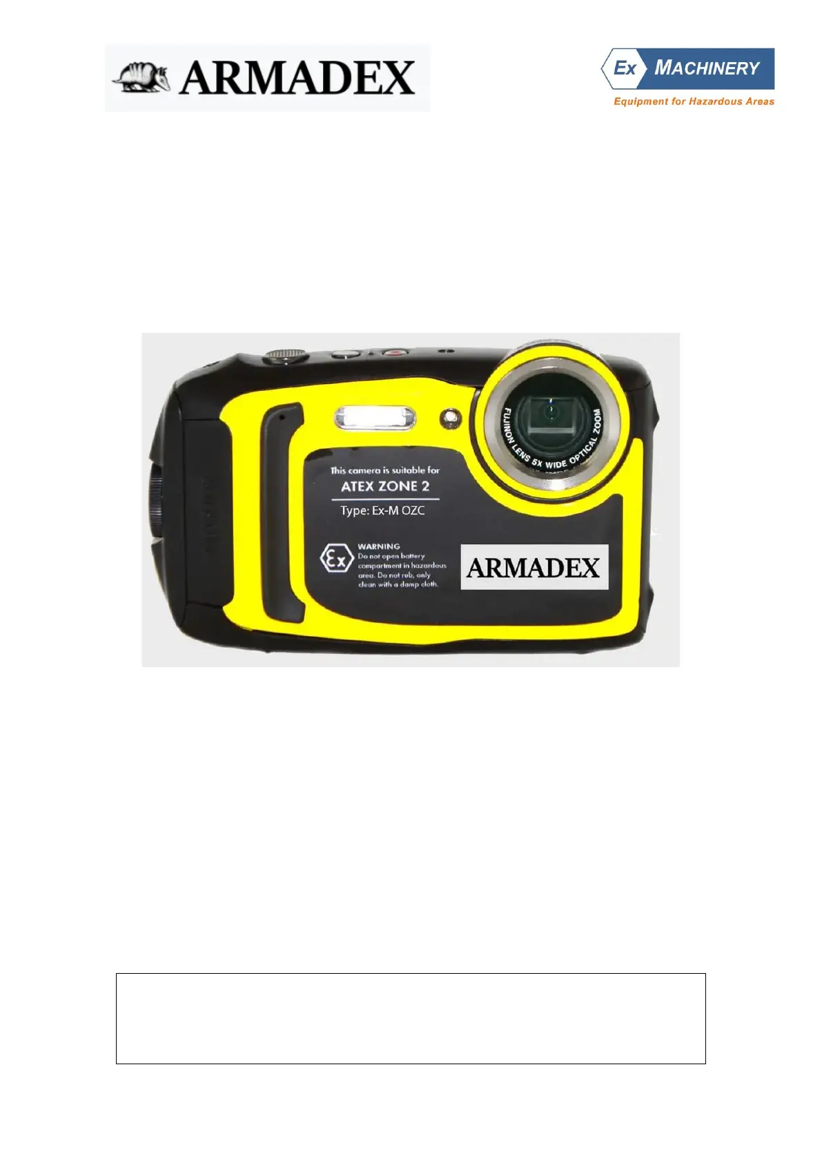 Equipment : ATEX zone 2 Explosion Proof Camera Ex-M OZC