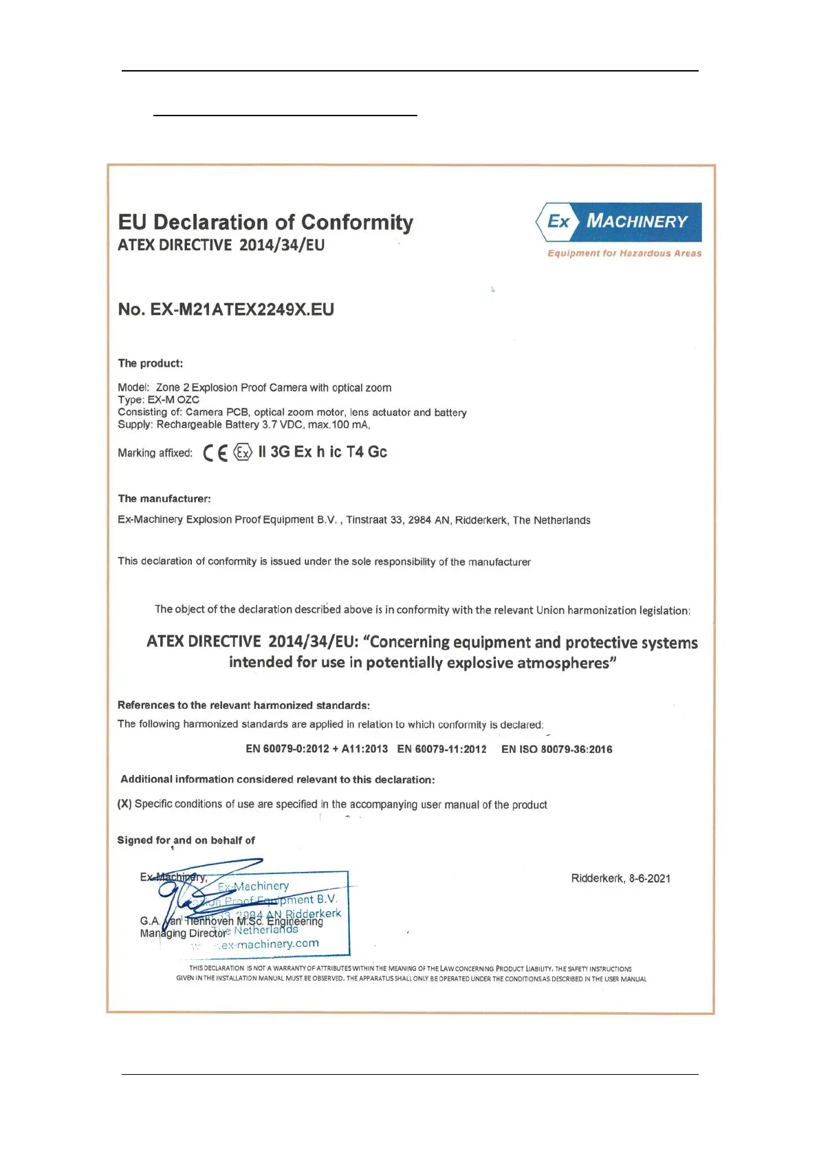 ARMADEX Ex-M OZC - EU Declaration of Conformity