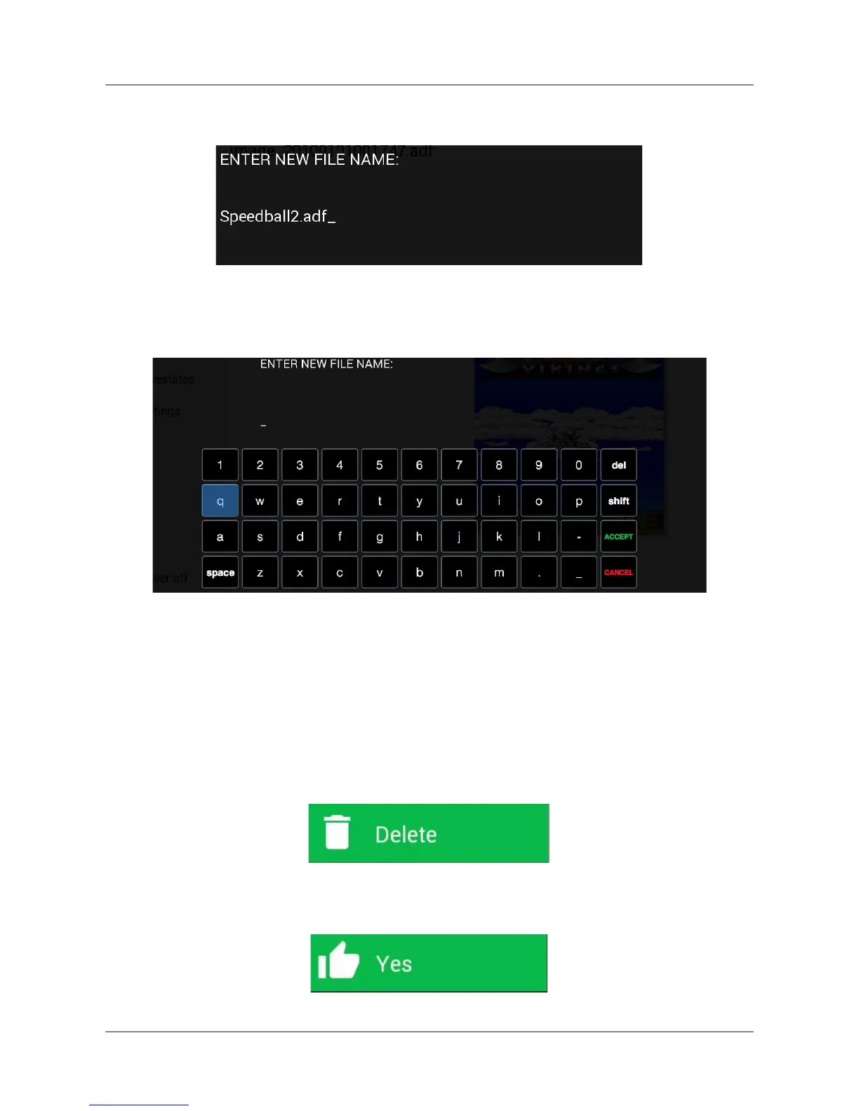 Make sure you want to delete the selected file. Then, highlight Yes and press fire or return.