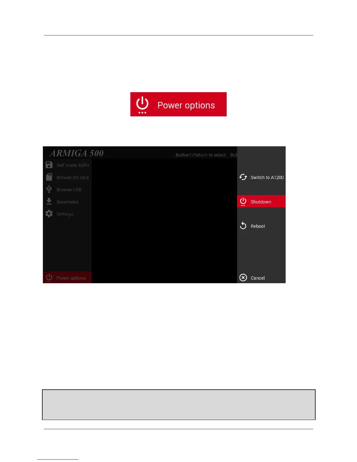 Your Armiga will securely shut down/reboot in about 5 seconds.