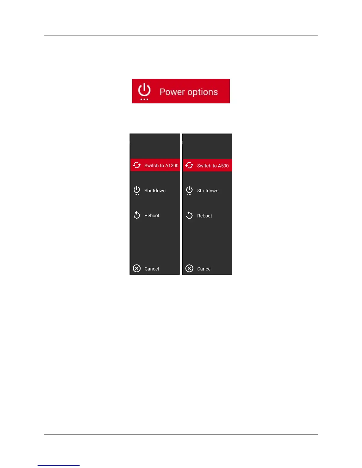 A new lateral menu will appear. Select Switch to A1200 or Switch to A500 to change into the